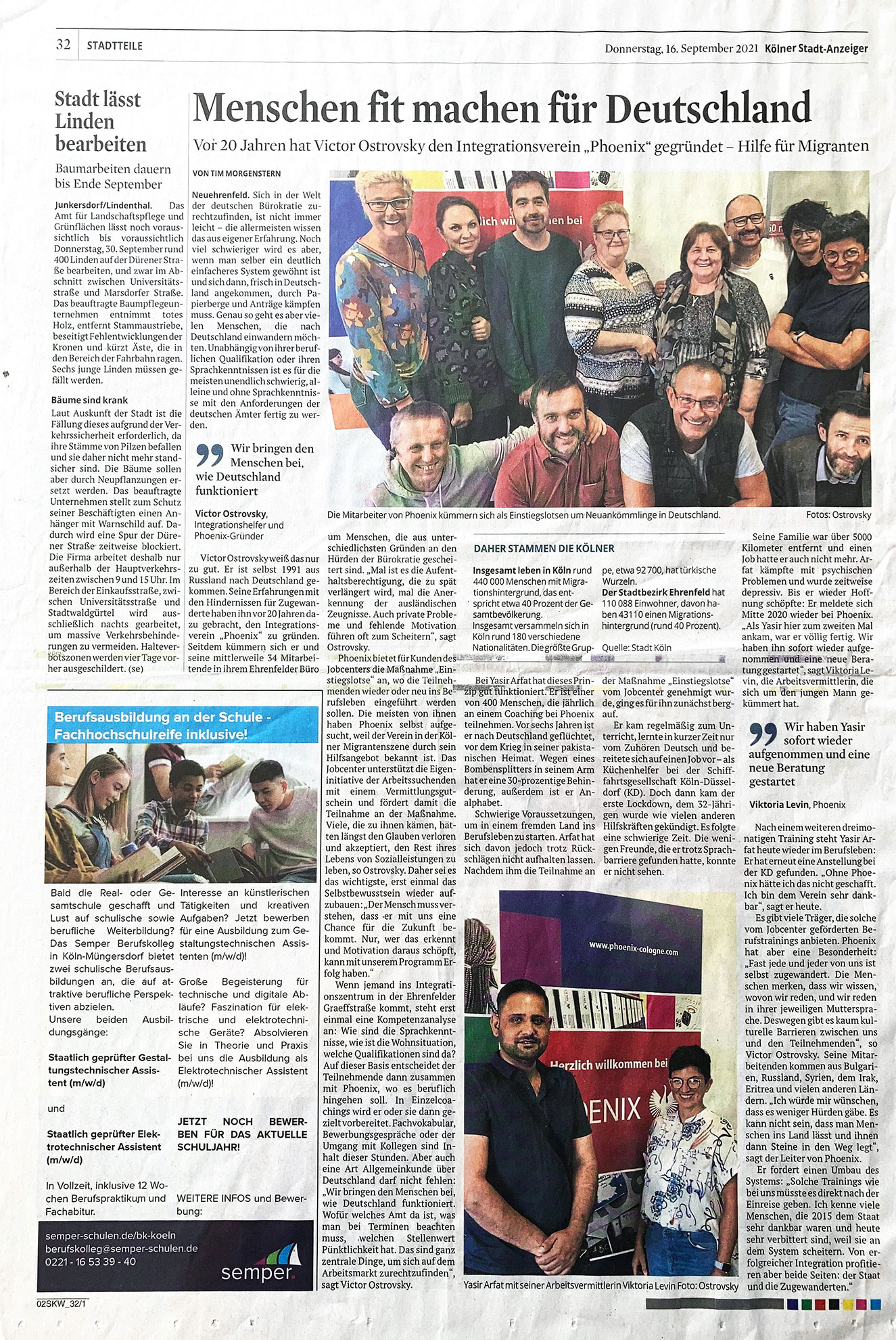 Vor 20 Jahren hat Victor Ostrovsky den Integrationsverein PHOENIX gegründet - Hilfe für Migranten.